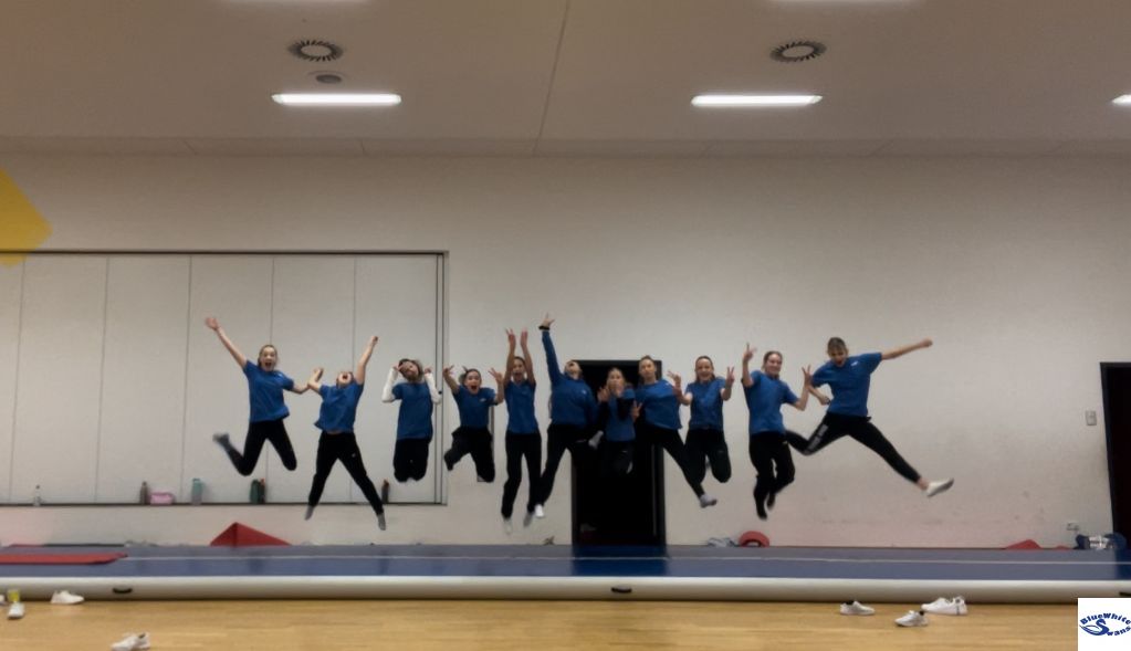 Am 02.03.2024 gab es die erste Hallenübernachtung der United Squads. Es war eine Herausforderung für unsere drei Trainerinnen Phoebe, Dana und Nancy, denn 42 Pubertiere zu bändigen, ist nicht immer einfach. Dazu dient das gemeinsame Tumbling mit Hallenübernachtung. Es stärkt das Mannschaftsgefühl und schweißt das Megateam zusammen. Zudem konnte die Zeit gut für die Festigung der neuen Meisterschaftschoreo genutzt werden.